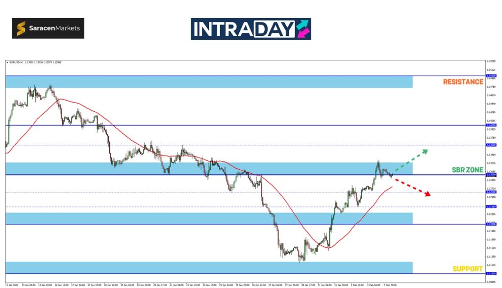 Bagaimanapun lonjakan harga tampaknya tersangkut di zon SBR (support become resistance) 1.13000 iaitu zon yang sering kali menjadi tumpuan utama untuk menentukan hala tuju sebenar.