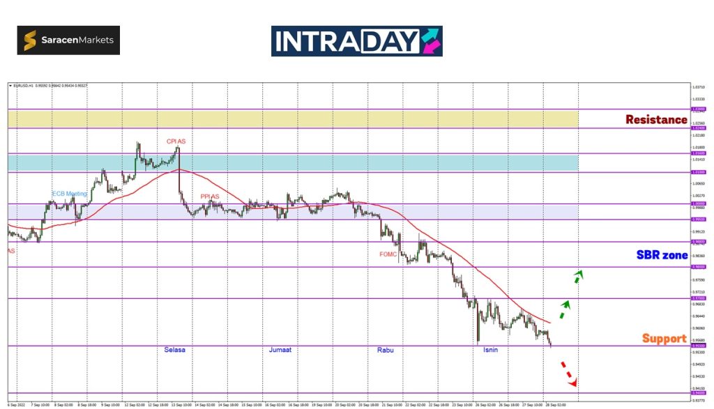 Penurunan yang diteruskan melepasi paras tersebut akan mencatatkan paras terendah terbaru 20 tahun dengan sasaran seterusnya boleh mencecah sehingga sekitar 0.94000.