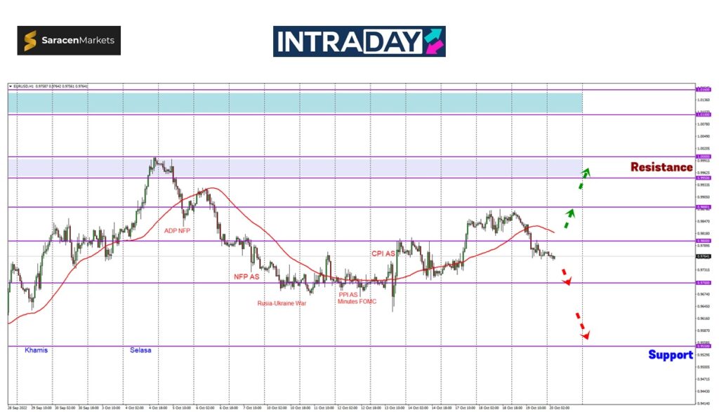 Sekiranya corak penurunan diteruskan, zon 0.97000 minggu lalu pula akan menjadi tumpuan yang bakal diuji semula dan dijangka bakal ada reaksi menarik harga di sekitar itu.