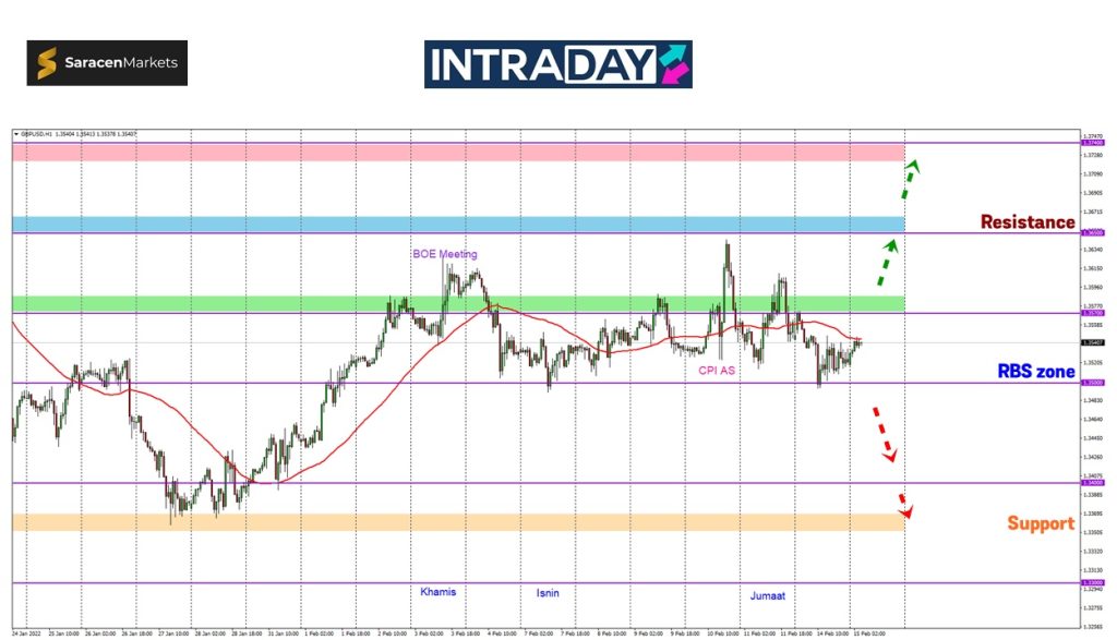 Sekiranya US dolar berjaya menambahkan tekanan terhadap Pound, pelabur berkemungkinan melihat harga menjunam lebih rendah melepasi zon RBS 1.35000 untuk trend bearish yang lebih jelas.