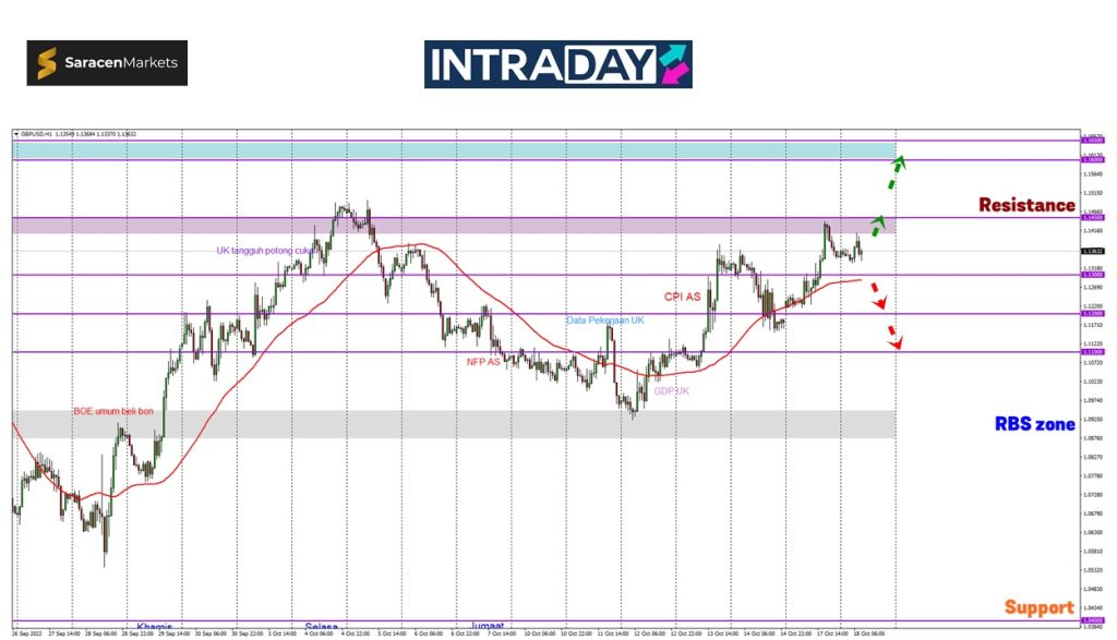 Berjaya menembusi zon berikut akan mencatatkan paras ketinggian terbaru 5 minggu dengan sasaran kenaikan lebih tinggi adalah menuju zon 1.16000.