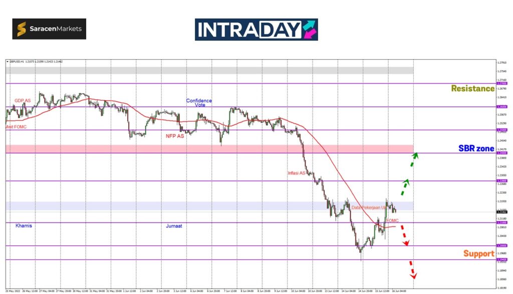 Menyambung dagangan pada sesi Asia pagi ini (Khamis), harga dilihat mendatar sekitar 1.21600 selepas berjaya melepasi rintangan harga 1.2100 di sesi sebelumnya dan berkemungkinan harga bakal menguji semula zon SBR (support become resistance) 1.22800.