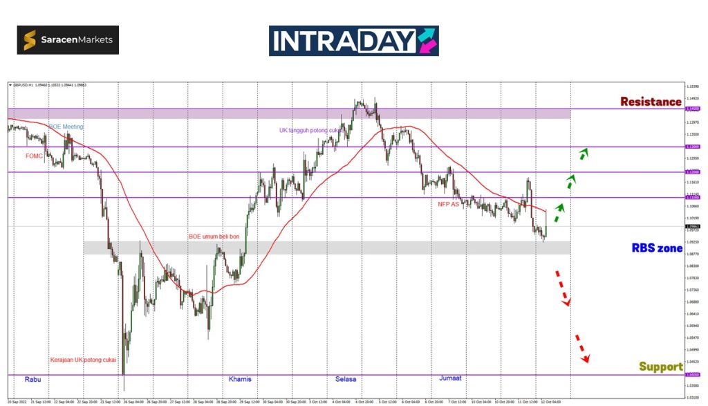 Sekiranya harga berjaya tembus lebih rendah, harga berpotensi untuk kembali mencecah semula sehingga ke zon terendah sepanjang masa pada 1.04000 yang dicecah pada penghujung September lalu.