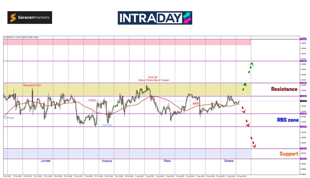 Untuk penurunan lebih rendah, paras 1.0100 pula akan dituju untuk harga menguji zon RBS (resistance become support) tersebut.
