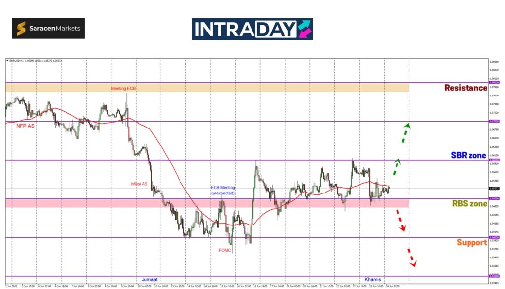 Pergerakan harga pada carta pasangan mata wang EUR/USD telah menyaksikan penurunan semula harga pada dagangan Khamis semalam menguji sekali lagi zon sokongan 1.05000 pada zon RBS (resistance become support).
