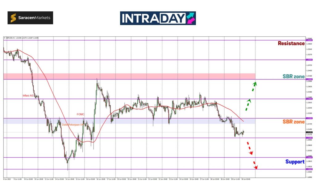 Dijangkakan penurunan yang lebih lanjut harga bakal menguji zon 1.21000 hari ini dan sekiranya penyusutan harga terus berlaku, harga bakal menuju pula ke zon support 1.20000 selepas penurunan harga pada pertengahan Jun lalu ke zon tersebut telah merekodkan paras terendah untuk tempoh dagangan 2 tahun.
