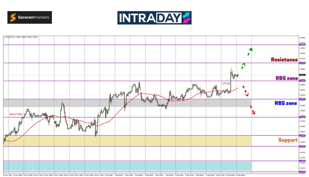 Dengan kenaikan harian sekitar 140 pips dicatatkan semalam, harga telah melonjak melepasi rintangan 1.06000 dengan paras tertinggi terbaru dicapai sekitar 1.06700.