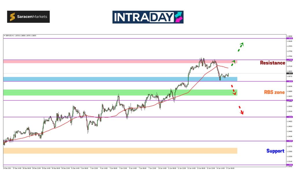 Penurunan harga pada penghujung minggu lalu dilihat menjadikan zon 1.36500 sebagai zon sokongan harga dengan pergerakan harga mendatar di atas zon tersebut bersambung di awal pembukaan pasaran minggu ini.