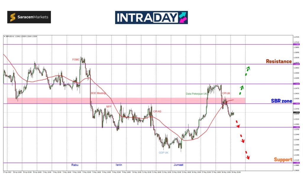 Penurunan lanjut harga akan dijangkakan untuk menuju ke zon tumpuan seterusnya sekitar 1.2300-1.2280 sebelum menyambung penurunan ke zon support minggu lalu sekitar 1.2160.