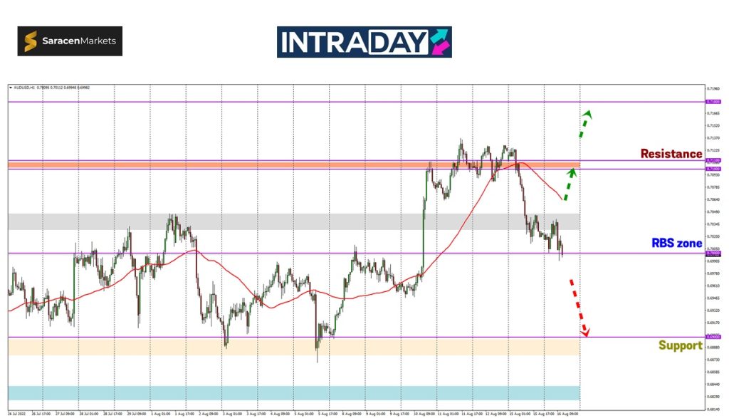 Jika harga menyambung penurunan di bawah paras 0.70000, harga berkemungkinan akan kembali mensasarkan sehingga ke zon support pada 0.69000 di mana zon tersebut telah berjaya membendung kejatuhan lebih rendah harga pada dagangan awal Ogos.