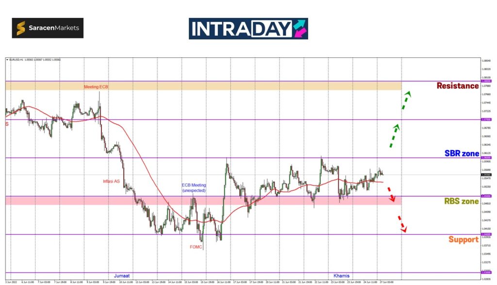 Sasaran untuk penurunan lanjut akan menuju ke zon support utama pada 1.04000 dan harga bakal catat paras terendah 20 tahun sekiranya harga jatuh lebih rendah dari zon tersebut.