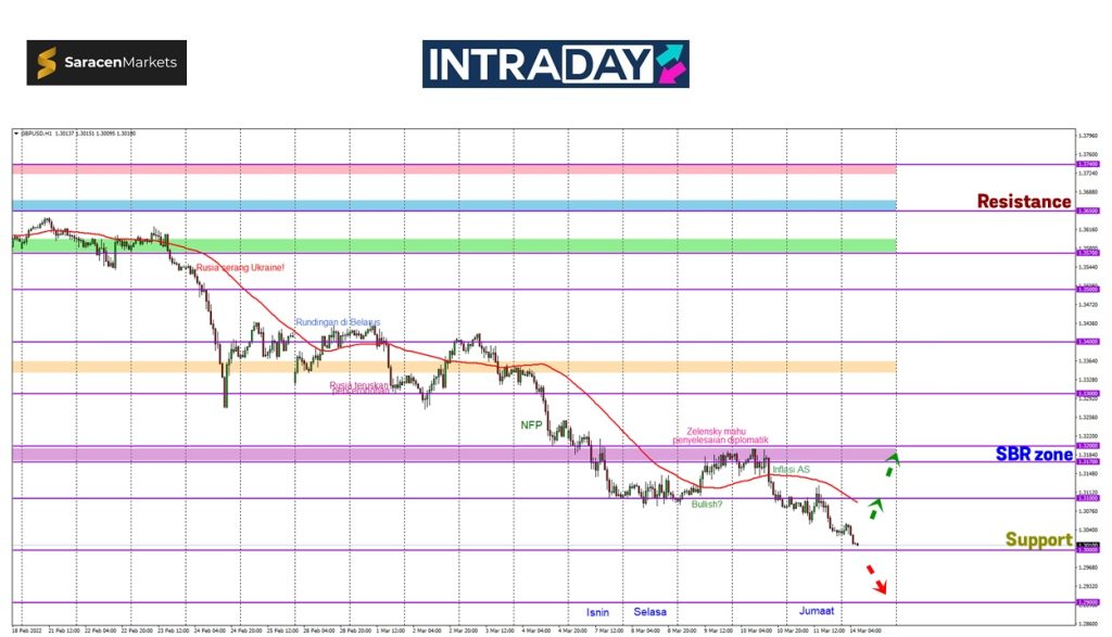 Untuk kenaikan lebih tinggi, zon SBR (support become resistance) 1.33000 dan 1.34000 bakal menjadi tumpuan seterusnya untuk pergerakan harga pada trend bullish.