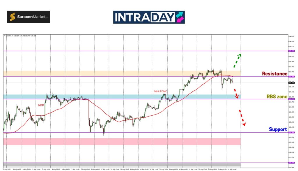 Sebaliknya jika harga berjaya melonjak dan melepasi halangan pada zon 137.000,paras ketinggian terbaru bakal dicatatkan untuk isyarat harga menyambung semula pergerakan trend bullish pada minggu-minggu sebelum ini.