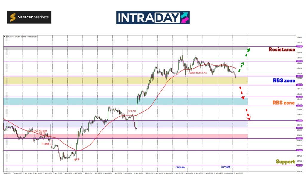 Memulakan dagangan pada pembukaan sesi Asia awal minggu ini, harga sedikit menurun menguji paras sokongan 1.03000 dengan jangkaan penurunan lebih rendah berkemungkinan diteruskan jika US dolar mengukuh.