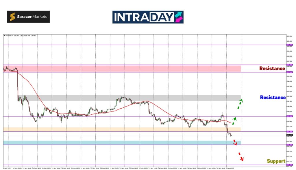 Harga telah menunjukkan penurunan ke paras terendah terbaru 4 bulan apabila zon support 137.00 telah berjaya ditembusi di sesi Asia pagi ini (Khamis).