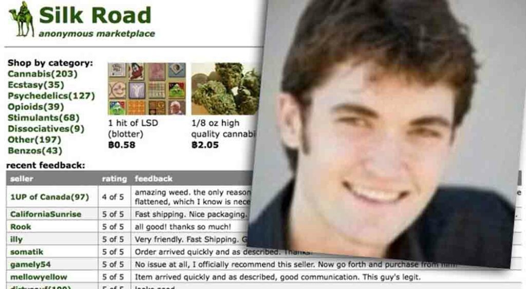 Ross Ulbricht dikenali sebagai penjenayah terbesar dalam dunia kripto. Laman web Silk Road telah digunakan untuk pengoperasian dan penjualan dadah, dokumen palsu, dan banyak lagi harta haram menggunakan mata wang kripto, Bitcoin (BTC).