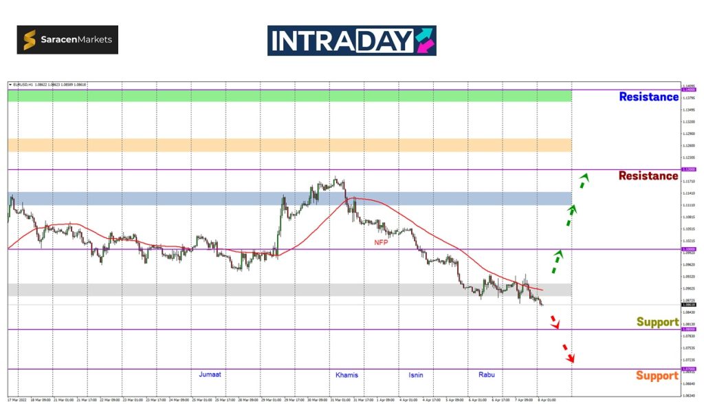 Dengan isyarat pergerakan harga masih dalam trend bearish, penurunan lebih rendah harga akan dijangkakan menuju paras support 1.08000.