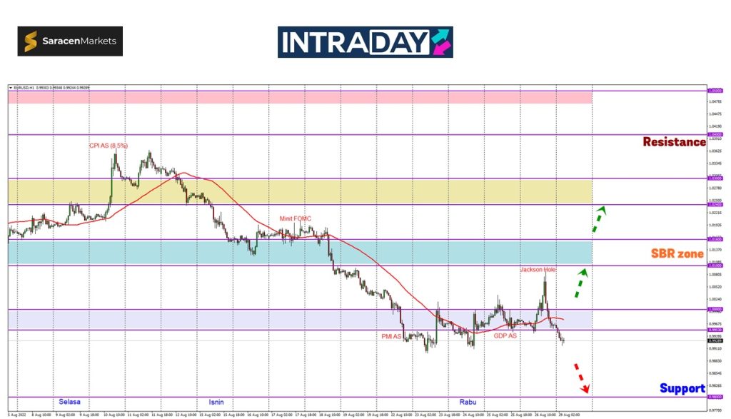 Paras support minggu lalu pada 0.99000 dijangka akan diuji sebelum ditembusi untuk harga mencatatkan paras terendah terbaru 20 tahun.