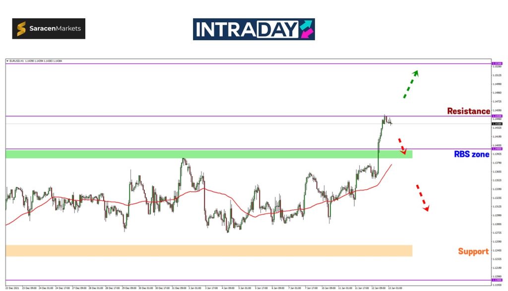 Sebaliknya jika penurunan harga kembali berlaku, paras 1.14000 bakal bertindak sebagai sokongan harga membentuk zon RBS (resistance become support) terbaru.