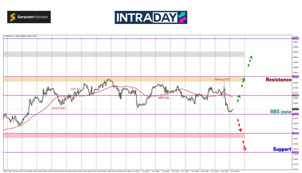 Sebaliknya jika zon RBS 1.06000 berjaya menyokong harga untuk melonjak semula, kenaikan awal akan menguji kembali rintangan pada 1.07000.
