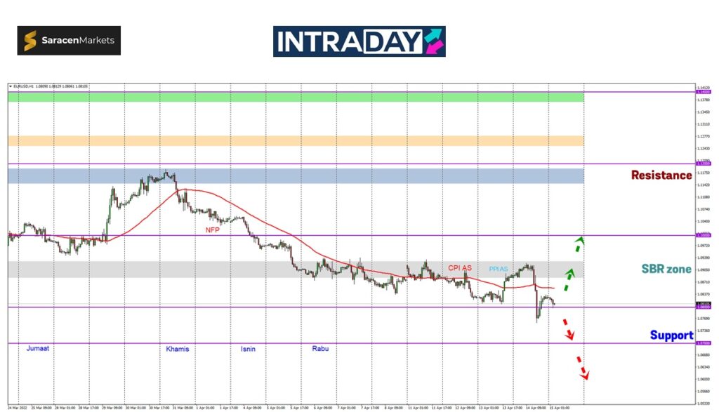 Sekiranya penurunan diteruskan hari ini, harga dilihat akan menuju ke paras sokongan terbaru pada sekitar 1.07000 yang sebelum ini pernah menyokong harga pada dagangan Mac 2020, untuk harga terus mencatatkan paras terendah terbaru 2 tahun.