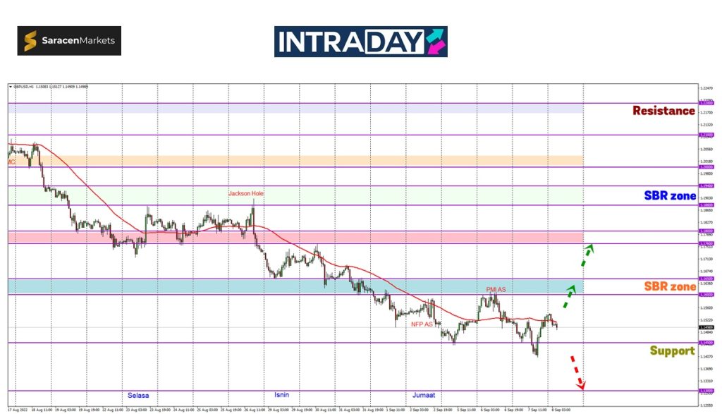 Sebaliknya jika harga menyambung semula penurunan lebih rendah, tidak mustahil paras terendah terbaru akan dicatatkan lagi melepasi sekitar 1.14000 yang dicecah harga semalam.