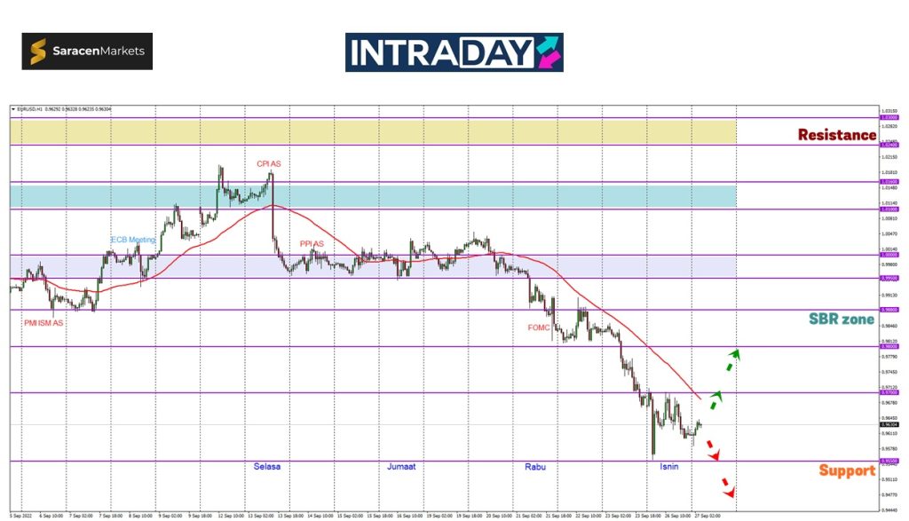 Penurunan harga yang dijangka bakal dilanjutkan akan menguji paras sokongan terbaru pada 0.95500 yang dicecah semalam.