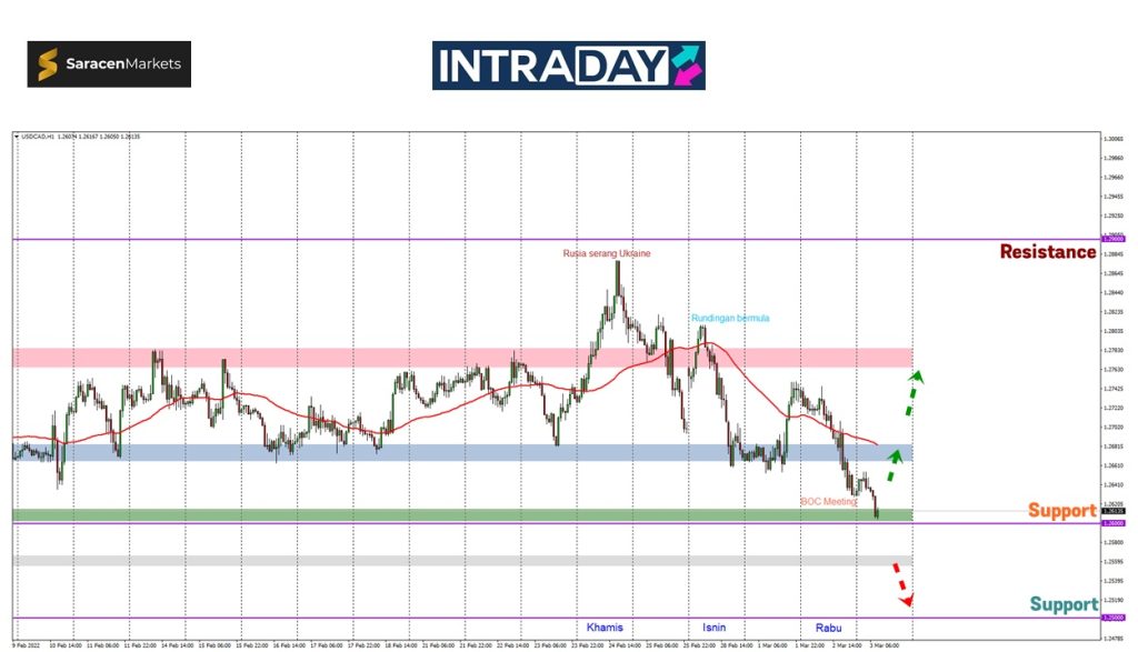 Sebelum ini pergerakan harga bagi mata wang USD dan dolar Kanada agak tidak menentu dan sukar untuk mencari arah yang jelas ekoran kedua-duanya bergerak setara selepas perang antara Rusia dan Ukraine tercetus.