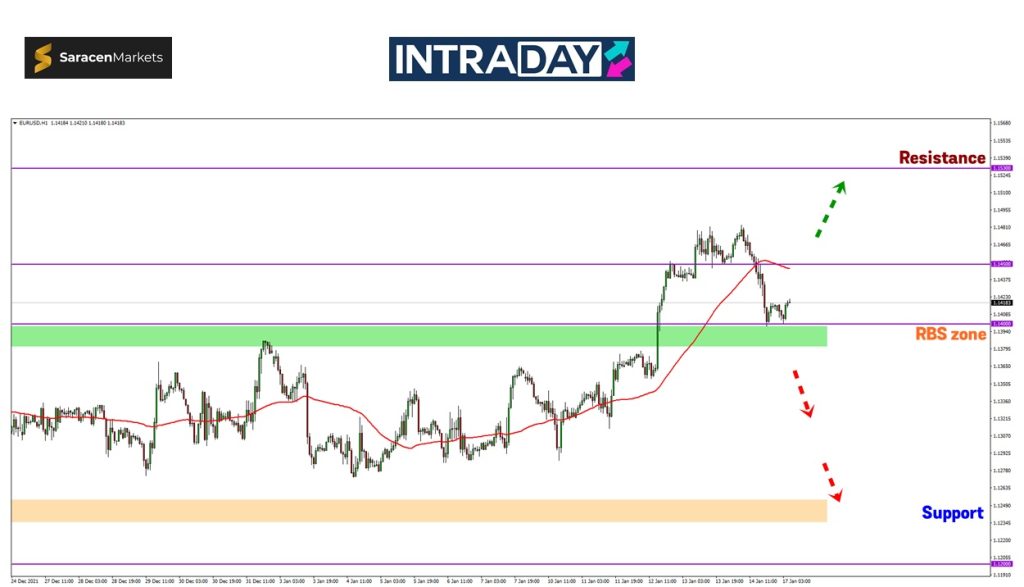 Namun pada Jumaat menyaksikan harga mula membuat penurunan semula ke paras sokongan 1.14000 menguji zon RBS (resistance become support) terbaru tersebut.