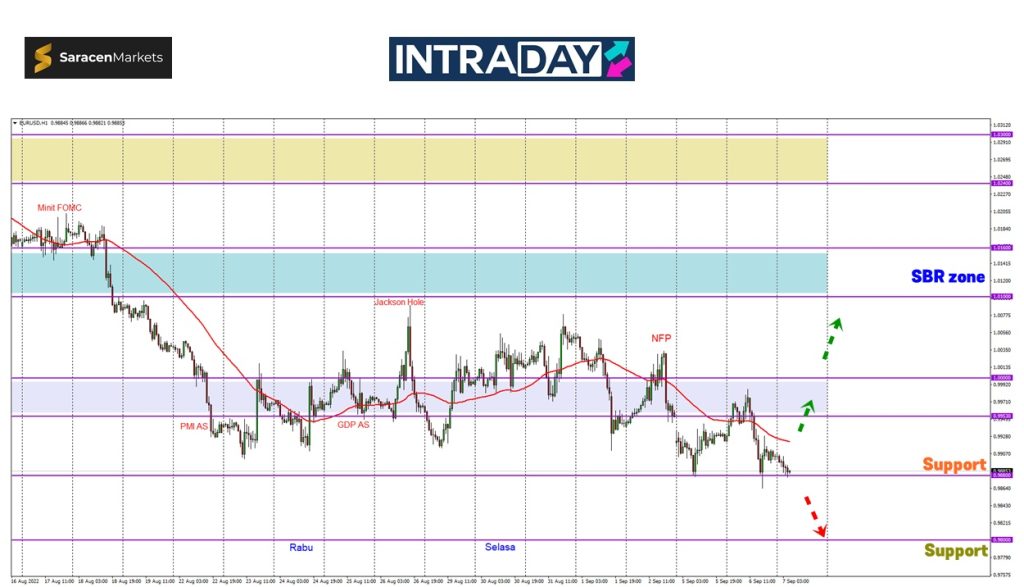 Penurunan harga jika diteruskan melepasi support 0.98800 seterusnya dijangka akan menuju pula ke sekitar 0.98000 untuk catatkan paras terendah terbaru 20 tahun.