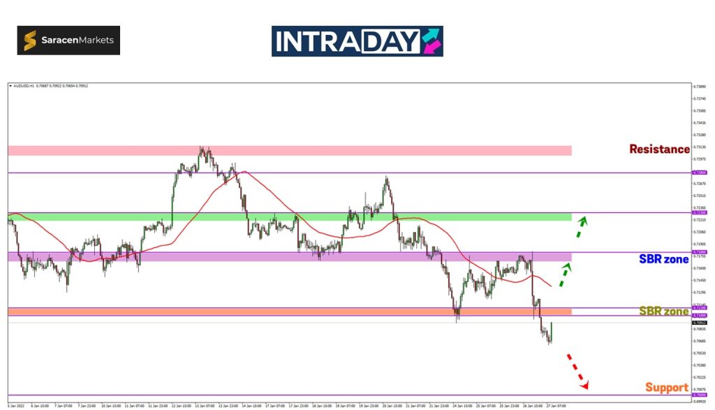 Berkemungkinan harga akan menguji zon 0.71000 sebelum untuk membentuk zon SBR (support become resistance) terbaru.