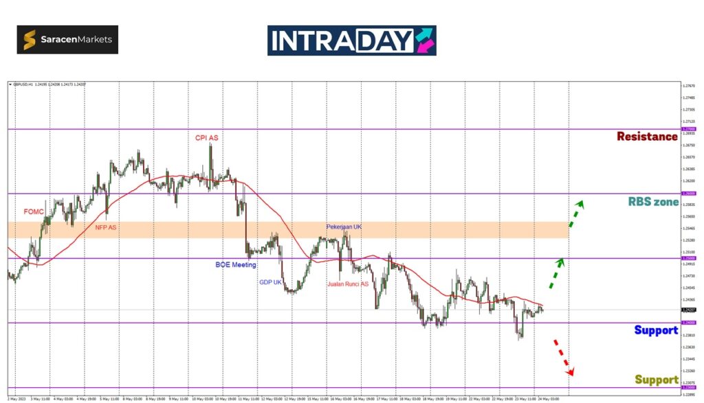 Namun jika harga melonjak melepasi halangan MA50 dan memberi isyarat untuk perubahan arah harga semula, kenaikan bakal menguji rintangan pada 1.25000.