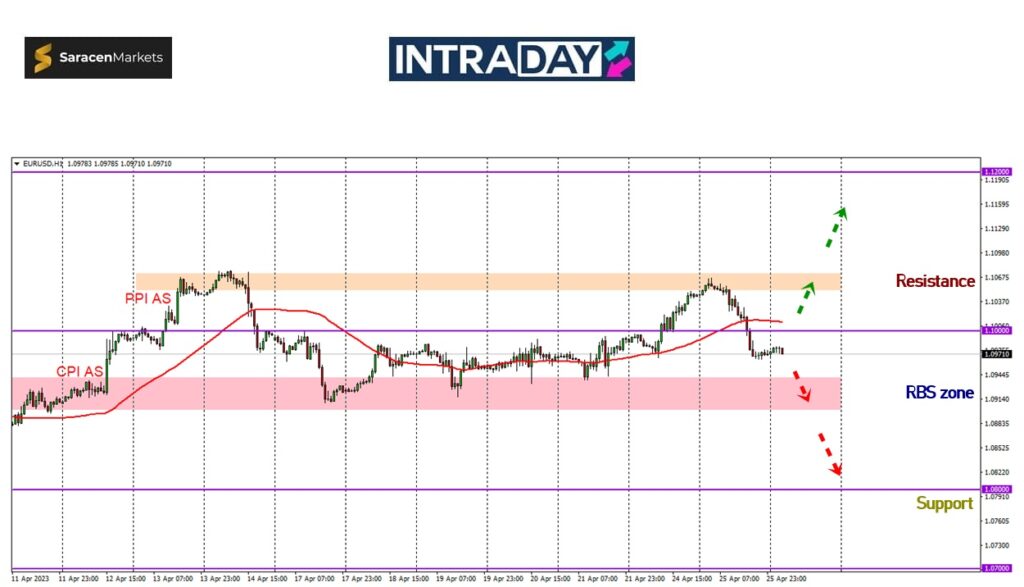 Jika US dolar berjaya kekal kukuh, harga akan ditekan lebih rendah menuju zon sokongan terhampir pada 1.09000 yang telah menyokong harga pada minggu lalu.