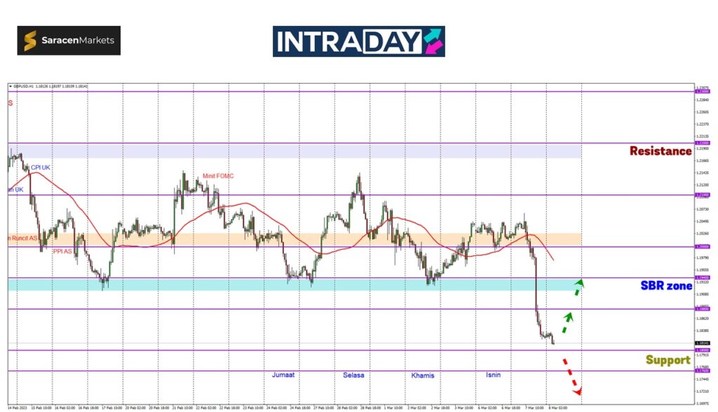 Penurunan lanjut harga akan dijangka diteruskan lagi hari ini untuk menguji zon tumpuan seterusnya pada 1.18000 sebelum melanjutkan lagi penurunan ke paras lebih rendah.