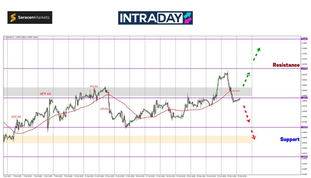 Dengan momentum semalam, harga dijangka menyambung penurunan lanjut untuk menuju semula ke paras sokongan tumpuan sebelum ini pada 1.05000.