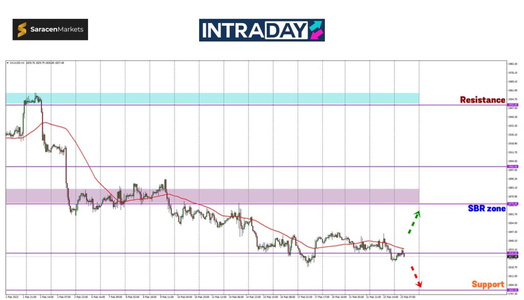 Sebaliknya jika gagal untuk kekal berada di atas paras 1830.00, penurunan lanjut harga akan dijangkakan mencecah zon support 1800.00.