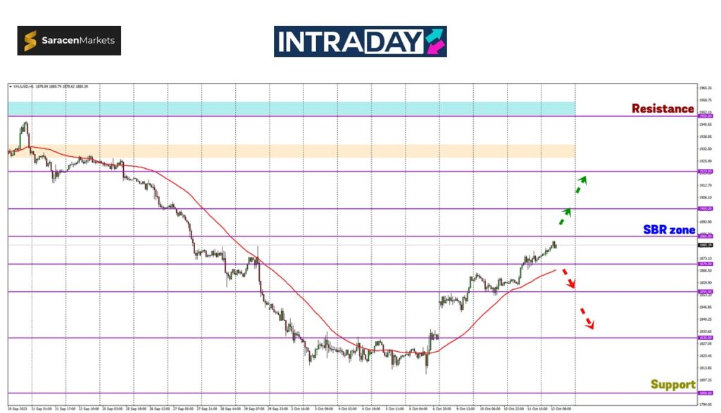 Jangkaan untuk kenaikan harga selepas melepasi paras 1885.00 adalah untuk mencapai paras penting pada 1900.00.