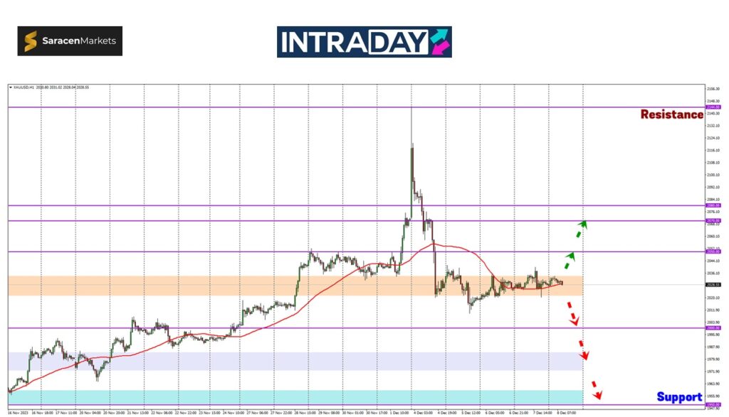Sekiranya harga emas berjaya melonjak semula, rintangan awal pada 2050.00 akan menjadi tumpuan sebelum kenaikan diteruskan ke sasaran 2070.00.