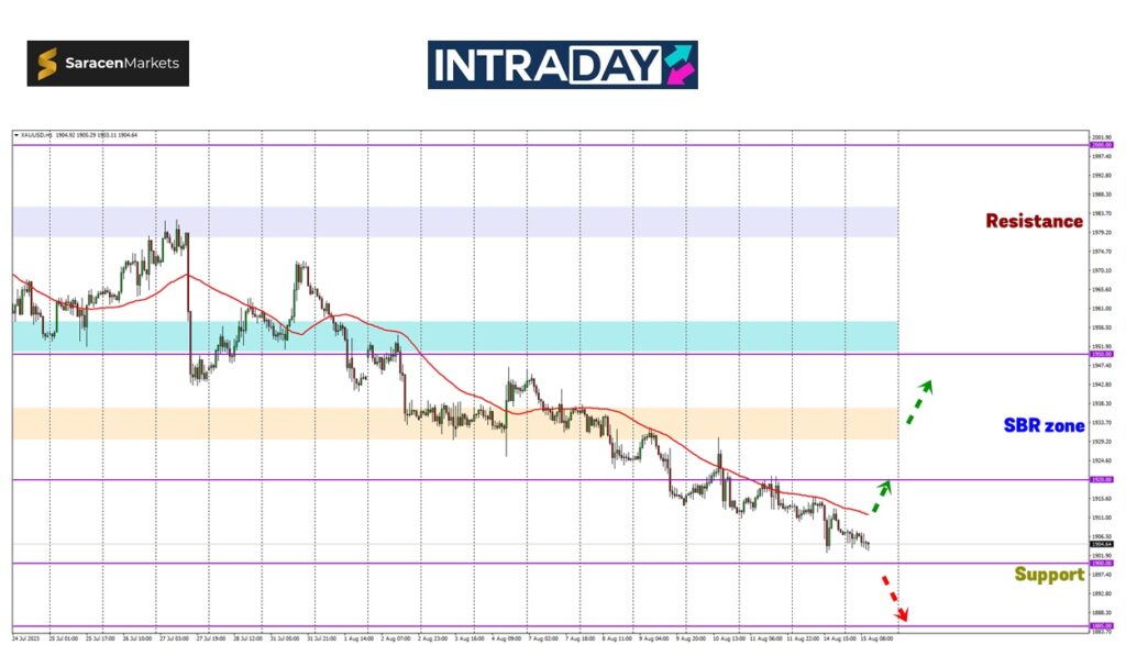 Harga emas dijangka akan menguji zon penting pada 1900.00 atau berkemungkinan tembus lebih rendah lagi hari ini.