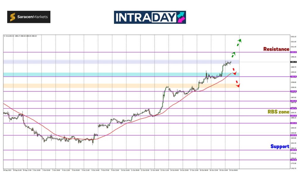 Jika diperhatikan pada carta XAU/USD yang mengukur nilai emas berbanding US dolar, harga mendatar perlahan di zon 1950.00 di sesi Asia bersambung ke sesi Eropah semalam.