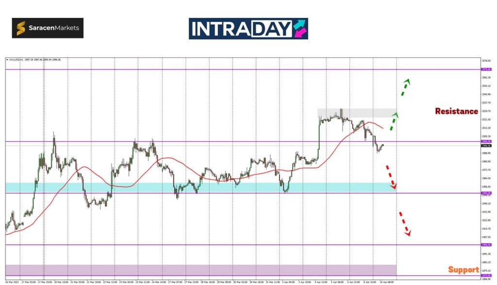 Dapat diperhati pada carta harga XAU/USD yang mengukur nilai emas berbanding US dolar, harga telah mencapai ketinggian sekitar 2032.00 minggu lalu sebelum berlegar semula di zon 2000.00.