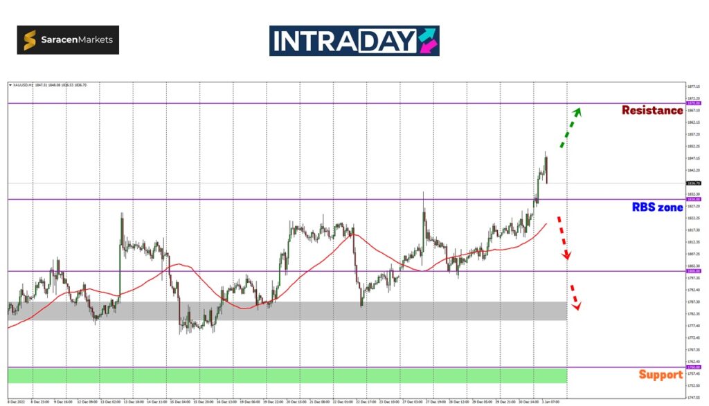 Namun, waspada sekiranya kejatuhan nilai emas berlaku semula, harga bakal susut kembali ke paras 1830.00 dengan reaksi menarik harga bakal dijangkakan.