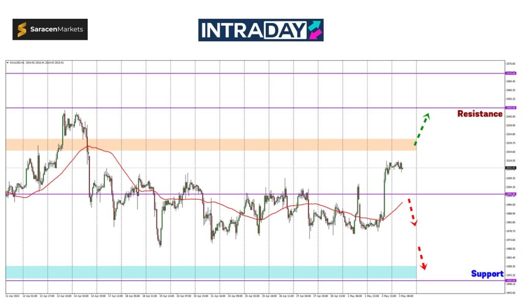 Pada carta harga XAU/USD yang mengukur nilai emas berbanding US dolar telah menyaksikan harga melonjak semalam melepasi paras 2000.00 setelah pada mulanya mendatar di sekitar 1980.00.
