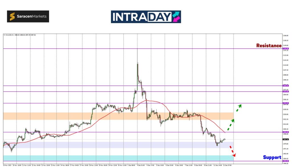 Jika corak penurunan diteruskan, harga yang melepasi zon 1970.00 seterusnya dijangka akan menuju zon tumpuan berikutnya yang berada pada 1950.00.