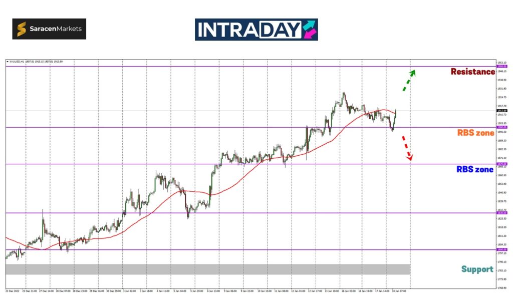 Sebaliknya jika harga melonjak semula dari zon 1900.00, harga emas akan menyambung semula pergerakan trend bullish minggu sebelum ini dan mengatasi ketinggian dicapai di awal minggu.