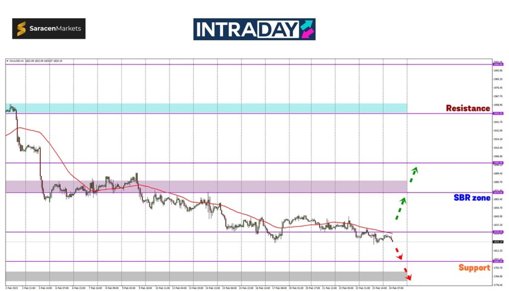 Sehingga menyambung dagangan ke sesi Eropah hari ini, harga mendatar di atas paras 1820.00 yang merupakan zon terendah untuk dagangan 2023 yang turut dicecah harga pada minggu lalu.