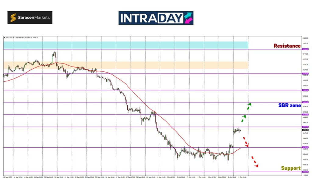 Jika kenaikan terus berlaku, harga yang melepasi paras 1855.00 dilihat akan menguji pula paras 1870.00 yang merupakan antara zon tumpuan pada dagangan terdahulu.