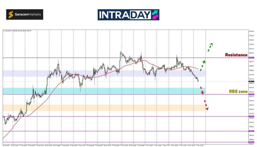 Seperti dijangkakan penganalisis sebelum ini, jika penurunan harga berlaku harga dilihat akan menghampiri zon RBS (resistance become support) pada 1950.00 dan reaksi harga di sekitar itu akan diperhatikan.