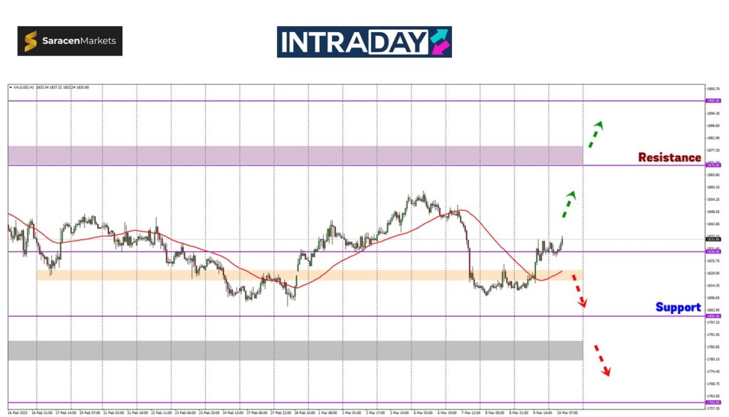 Jika sebaliknya yang berlaku, harga berkemungkinan boleh menjunam semula di bawah paras 1830.00 sebelum harga menuju paras sokongan penting pada 1800.00.