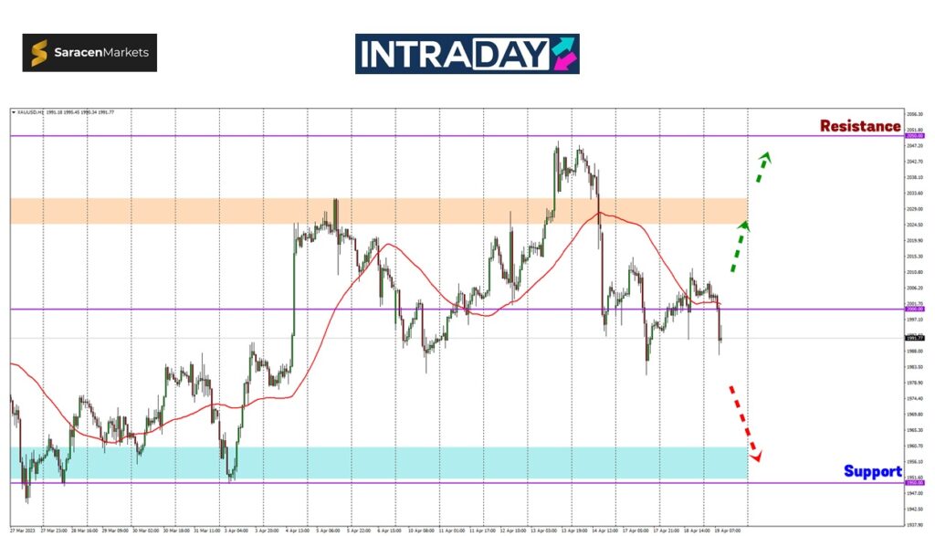 Meneliti carta harga XAU/USD yang mengukur nilai emas berbanding US dolar, harga dilihat gagal bertahan di atas paras 2000.00 sebelum penurunan ketara semula berlaku di sesi Eropah petang ini.